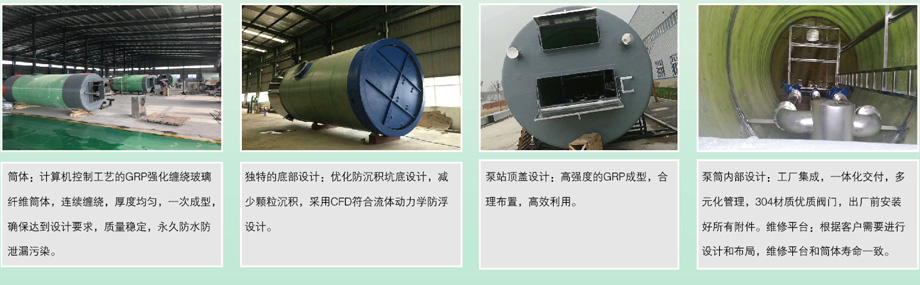 預(yù)制泵站筒體結(jié)構(gòu)采用電腦控制玻璃鋼纖維連續(xù)纏繞成型,確保厚度均勻并達到設(shè)計要求,能承受土壤壓力和地面動載壓力,質(zhì)量穩(wěn)定優(yōu)良。